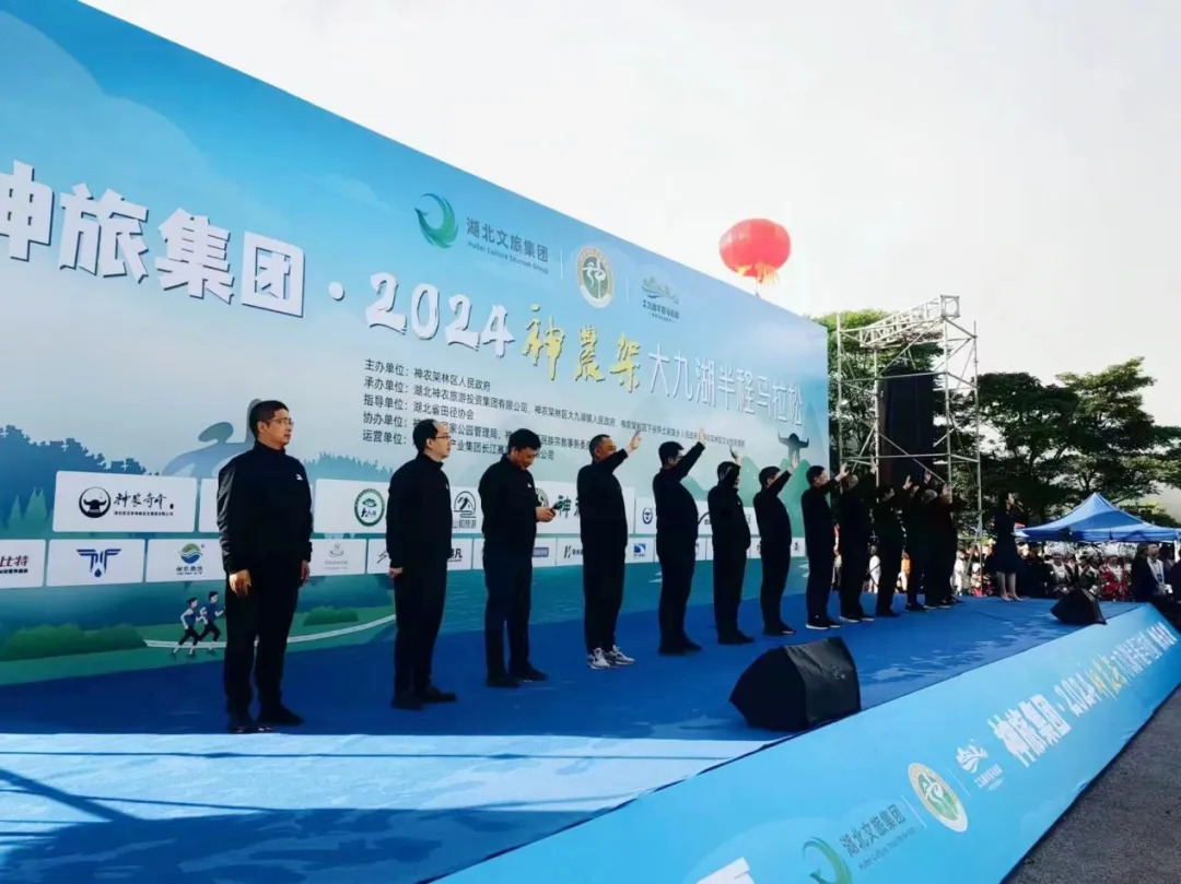 本次活動由神農架林區黨委書記、人大常委會主任馮偉;湖北文化旅游集團有限公司黨委副書記、總經理易三平;神農架林區政協主席、黨組書記王文華;湖北省體育局群眾體育處副處長胡偉;神農架林區黨委常委、宣傳部部長王常彬;神農架林區人大常委會黨組副書記、常務副主任周立春;神農架林區人民政府黨組成員、副區長唐軍;勁牌神農架酒業有限公司董事長劉庭林等領導共同出席啟動起跑儀式,并為參賽選手鳴槍發令。奧運冠軍廖輝擔任領跑嘉賓,與來自五湖四海的2500名選手共同起跑。